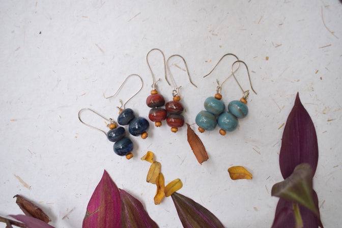 This Earring is made by a technique called Nerikomi where the numerous stacked ceramic layers appear as fine undulating lines embedded in a surrounding color in the finished earring.